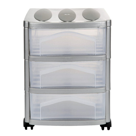 Bama Insieme Ladesysteem Met Wieltjes 3 Laden 36X40X62 Cm Zilver/Blauw/Transparant